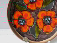 Ruscha West German Pottery: Vintage Wandteller Blumen / wall plaque flower 60s 70s / wall plate Hippie decor ceramic / alte WGP Wandplatte floral / großer Teller Keramik / Retro Keramikteller / Second Hand Keramikplatte / Geschirr Keramik / Flower Power Wanddeko. Made in Germany ca. 60er, 70er Jahre.